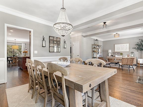 Straight out of the Pottery Barn catalog, this 5-bedroom, 4-bath Bella Casa beauty combines timeless style with modern updates. Ideal floorplan includes a formal dining room, versatile flex room, homework nook, and a main-level guest suite that doubles as a quiet office. The open kitchen offers granite counters, abundant storage and workspace, updated appliances including a gas cooktop, and custom pantry. Gorgeous site-finished hardwoods, extensive millwork and upscale lighting flow throughout for a truly elevated feel. Major updates include a new HVAC system (2024 air handler & condenser) and a 2023 roof for peace of mind. Upstairs, discover a luxe primary retreat with a spa-like bath and two walk-in closets, three additional bedrooms (one with its own ensuite), a dedicated laundry room, and a huge bonus room perfect for recreation and relaxation. Outdoors, entertain in style on the expansive paver patio with raised beds and a high-end outdoor kitchen featuring a refreshment cooler, direct-line gas grill, and plenty of gathering space—all overlooking the fully fenced backyard. All of this in one of the most sought-after neighborhoods in Apex—nationally recognized as the best small town in America—featuring 3 pools, 2 clubhouses and tennis courts, and right next door to Apex Nature Park/Seymore Athletic Fields offering lighted tennis and pickleball, disc golf, extensive greenways, dog park, and more.