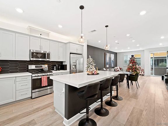 Elegant like-new townhome in the beautiful “Millenia” Community by Lennar! Features 4 bedrooms, 3.5 Bath, and 2-car garage. First floor guest suite with a full bathroom! The main floor is open and spacious with a gorgeous kitchen, large oversized island, walk-in pantry, 1/2 bath, high ceilings, and a large balcony! Cutting-edge Wi-Fi CERTIFIED design incorporates wireless access points throughout the home for strong, consistent internet coverage in every room no dead spots! Additionally, $30,000 dollars in upgrades include Luxury Vinyl Plank, kitchen backsplash, stainless steel appliances, tiled bathrooms, PAID OFF Solar, Tankless water heater, Keyless entry and top of the line bedroom carpeting. Located steps away from community Pool/Spa, BBQ Area, Park/Dog Parks, and more! Enjoy the perks of the Millenia walkable community. Meander through parks, promenades, gathering areas, and inviting gardens as you make your way around the districts, or walk to Otay Ranch Town Center across the street. No matter where you live in Millenia, you’re within easy walking distance of shops, restaurants, and the local market. Lets not forget the Grade-A schools. Turn-key, move-in ready!