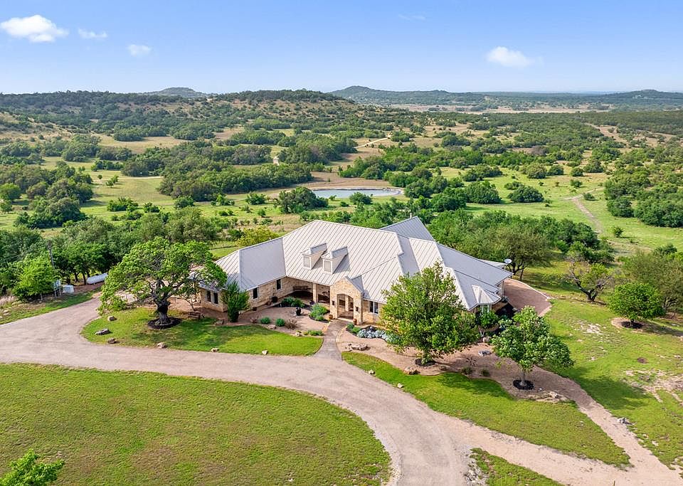 This private 365-acre ranch sits conveniently between Johnson City and Round Mountain just West of US 281 making it easily accessible from HWY 71 or US 290. A custom 2005 built 3,997 sqft main house with covered back porch is perched on a hillside overlooking the main body of the ranch. There are 2 water impoundments including a multi-acre lake when full and additional small pond both Kevlar lined. A 40 x 60 metal barn with 5 covered exterior bays and 1,000 sqft 2 bedroom 2 bath guest house with wood back deck complete the vertical improvements. This ranch boasts large acreage neighbors +/- (996 North, 785 West, 3400 East, 365 South). All ranch roads have had road base added and were bladed & rolled. Most of the cedar has been cleared leaving excellent hardwood & underbrush cover for wildlife. Blacktop road was added &/or maintained to the access road, main house, barn and guest house. There are 3 water wells on the property (2 electric, 1 windmill/solar). This ranch is groomed with well cared for improvements offering tremendous views.