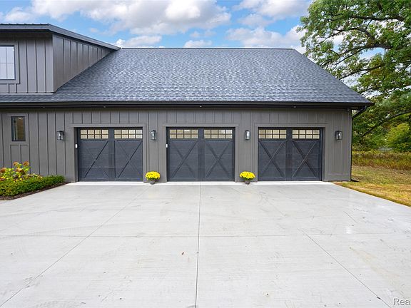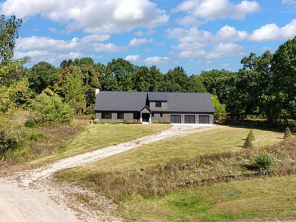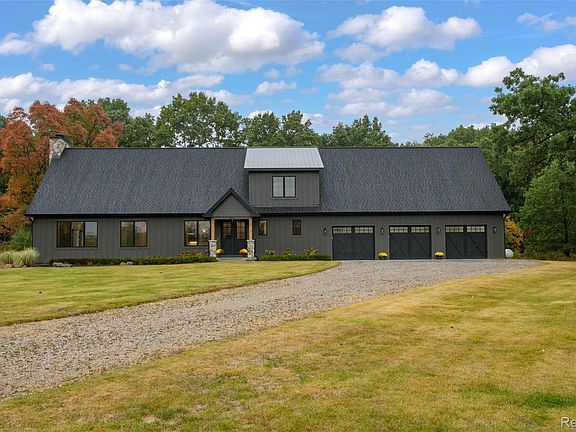 (NOTE: some GPS directions are incorrect. N Milford Rd. (NofM59) to W Wardlow Rd. to N on Percy Lane to end of cul-de-sac) Custom New Build without the wait!! This Barndominium style home has it ALL! This home sits on 3 acres, sod with sprinklers in front, edges of property are left natural landscaped. Property is larger than mowed areas. This gorgeous home features an enormous, open concept Kitchen, Dining and Great Room. Custom cabinetry throughout with high end finishes. Kitchen features include beautiful custom, dark sage-green cabinets with white quartz countertops with golden accents. 8 foot island can accommodate pull-up seating for quick dining. Top of the line Stainless Steel Appliances with microwave tucked in the island cabinetry. Large, walk-in pantry right off kitchen. Dining room area can fit large farm-style table for formal dining. Great room off the kitchen/dining areas can be used for extra seating, study/reading nook etc. The adjoining family/sun room is the highlight of this home. It has numerous windows for natural light with countryside views, floor to ceiling stone fireplace as its centerpiece and large enough to accommodate big furniture pieces and family/friend gatherings. Primary bedroom with en suite is on main floor. Bath has floor to ceiling tile work and rain shower head. Two large bedrooms upstairs with Jack and Jill bathroom. Ample Closet storage upstairs. Covered back Patio has wood ceiling with lights and ceiling fan with views of the woods. Basement is plumbed and ready for bathroom install, has an egress window for possible future room and has numerous finishing possibilities. Garage is about 1400+sq.ft. and has 3 (10ft) doors that are super quiet and room for 6+ cars, and/or a lift, LED lighting and fog lights inside on wall to see in trunks, security cameras connected to private server and plumbed for gas. Home also has outside security cameras connected to private, hard-wired server. Taxes are NonHomestead and will be less.