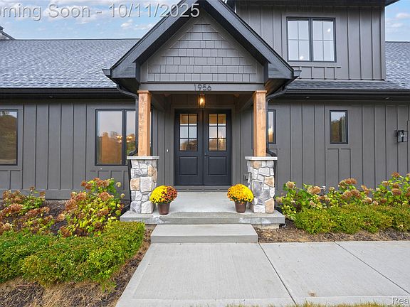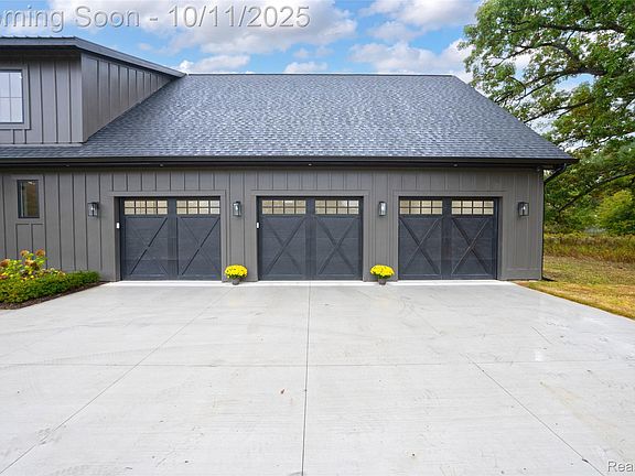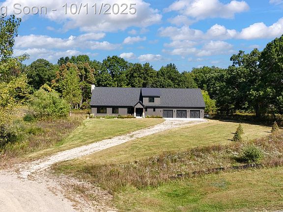 Open House 10/11/2025 from 11am- 2pm. Custom New Build without the wait!! This Barndominium style home has it ALL! This home sits on 3 acres, sod with sprinklers in front, edges of property are left natural landscaped. Property is larger than mowed areas. This gorgeous home features an enormous, open concept Kitchen, Dining and Great Room. Custom cabinetry throughout with high end finishes. Kitchen features include beautiful custom, dark sage-green cabinets with white quartz countertops with golden accents. 8 foot island can accommodate pull-up seating for quick dining. Top of the line Stainless Steel Appliances with microwave tucked in the island cabinetry. Large, walk-in pantry right off kitchen. Dining room area can fit large farm-style table for formal dining. Great room off the kitchen/dining areas can be used for extra seating, study/reading nook etc. The adjoining family/sun room is the highlight of this home. It has numerous windows for natural light with countryside views, floor to ceiling stone fireplace as it's centerpiece and large enough to accommodate big furniture pieces and family/friend gatherings. Primary bedroom with en suite is on main floor. Bath has floor to ceiling tile work and rain shower head. Two large bedrooms upstairs with Jack and Jill bathroom. Ample Closet storage upstairs. Covered back Patio has wood ceiling with lights and ceiling fan with views of the woods. Basement is plumbed and ready for bathroom install, has an egress window for possible future room and has numerous finishing possibilities. Garage is about 1400+sq.ft. and has 3 (10ft) doors that are super quiet and room for 6+ cars, and/or a lift, LED lighting and fog lights inside on wall to see in trunks, security cameras connected to private server and plumbed for gas. Home also has outside security cameras connected to private, hard-wired server. NOTE: some GPS directions are incorrect. N Milford Rd. (NofM59) to W Wardlow Rd. to N on Percy Lane to end of cul-de-sac