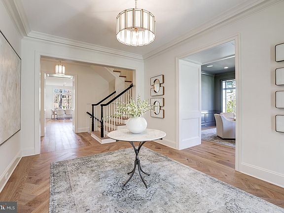 Inspiration lives well at Franklin Park’s 1956 Rockingham Street, an incredible collaboration between Bespoke, Brush Arbor, Wellhouse & Co and MV Architects with cabinetry by Studio 37. A crisp and clean new exterior oozes charm and the entire home has been meticulously renovated with the vision, eye for detail, quality of construction, sophisticated appointments and thoughtful design that only a team of this caliber could produce. The result is a complete transformation from neighborhood eyesore to high quality, classic residence, encompassing 6 bedrooms, 5 and 1/2 baths; +/- 6,300SF of interior space on a flat, pool-ready .53 acre lot. With high-end, custom appointments throughout, the main level's 10 ft ceilings, floorplan and interior design maximizes the use of traditional molding and transitional yet timeless finishes. An abundance of natural light fills the home from nearly every room. The main living space features a library with floor to ceiling built-ins, a formal dining room with unique arched built-in butlers pantries, a gracious formal living room, and a family room with a beautiful cast-stone fireplace. The heart of the home is found in the magazine worthy kitchen with its flawless presentation, premium appliances and walk-in pantry. An inviting openness between the kitchen and living areas allows life to flow easily from one moment to the next. The covered porch offers a view of the spacious, private and lush pool-ready rear yard. More than a bedroom, the Primary Suite with a beautiful tray ceiling serves as a retreat within the retreat and again offers views of the unbelievable rear yard. Thoughtfully designed to ensure privacy and serenity, the oversized closet is across from a luxuriant marble bath, which is complete with a free-standing soaking tub, large shower, a water closet, and dual vanities. Four additional bedrooms with 2 ensuite and 1 jack-and-jill bath and a spacious, adorable laundry/craft room round out the amenities on the upper level. Two car garage with mudroom and lower level recreation room with white oak beams, a bar that’s just right for the space, a bonus room and a sixth bedroom with a large bath and rough-in for a washer and dryer complete the offering. 1956 Rockingham is sited beautifully in the heart of the sought-after community of Franklin Park, known for its lush natural landscape, mature trees, and charming rolling hills, this home offers access to the best of McLean with its close proximity to all that Downtown McLean has to offer, and is also ideally situated just minutes to the George Washington Parkway, 1-66, Tyson’s Corner, and the Capitol Beltway.