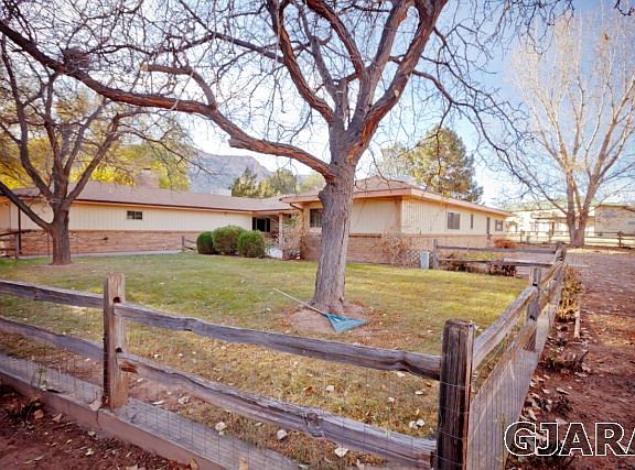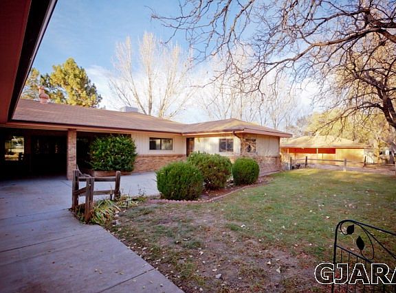 Located down a lane in a very private, secluded location, this sprawling ranch style home is on 0.806 acre lot, has master bedroom with adjoining sitting room/den, two additional bedrooms, three bathrooms (1 full, 3/4 and 1/2), living room with wood burning fireplace and wetbar, formal dining, and spacious kitchen with breakfast bar. There is also an office with built-in cabinets. Entry courtyard for outside entertaining. Two car attached garage with workshop. The detached shop/stable has overhead door and could easily be used for workshop or barn. Updates include newer vinyl windows throughout the house and two new furnaces just installed.