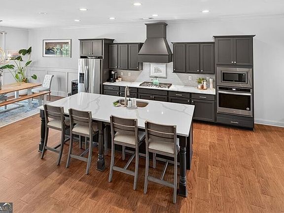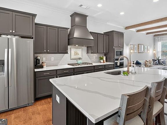 Tucked away in Brookhaven's best-located community, 1956 Skyfall Circle offers rare privacy with a wooded back view-not facing Buford Highway. This upgraded end-unit townhome features 10' ceilings, wood beams, a stone fireplace with shiplap, and designer tile and countertops throughout. The chef's kitchen with oversized island anchors the open floor plan and opens to both light-filled living and dining areas, plus an extended deck overlooking the trees. Upstairs, the primary suite wows with a soaking tub, walk-in shower for two, dual vanities, and a spacious closet. The lower level includes a 4th bedroom or office with full bath and covered patio. Enjoy a 2-car garage plus 2-car driveway, community saltwater pool, clubhouse, private dog park and unparalleled access to some of Atlanta's best dining. Comparable homes in the community lack this level of finish or privacy, making 1956 Skyfall Circle a rare opportunity to own the most upgraded floor plan in the best location, without the premium price tag. Minutes to Town Brookhaven (15+ restaurants and Costco), Brookhaven Village, and walkable to the best of Buford Highway-this is the perfect mix of privacy and ease, city convenience, and style.
