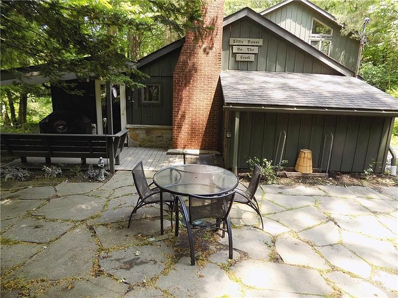 Contemporary Unique Upgraded 4 Bedroom 2 Bath Property on Slippery Rock Creek . 2 Parcels totaling 3.02 Acres Beautifully landscaped grounds that include a fire pit, flagstone patio , built in benches, grilling area and a storage shed. There is a 4 car tandem garage (44x26) with an unfinished loft. The house is open concept living room, loft sitting area, breakfast nook,and a large kitchen with a coffee bar and a heated enclosed side porch. Walls of Windows show of the magnificent yard and view of the creek. Master Bedroom has cathedral ceilings, skylight and windows overlooking the yard. Custom hand built slate large shower, heated floors & heated towel rack. Lots of upgrades to plumbing, electrical and is cable and security system ready. 1 hour from Pittsburgh, close to Moraine State Park, Outlet Shopping & various universities ." Little House on the Creek" is not to be missed it is an amazing property!