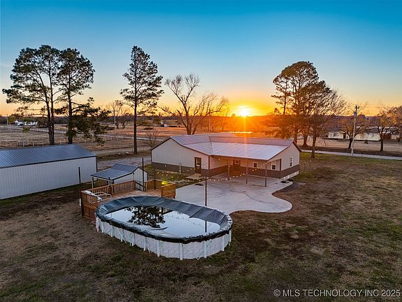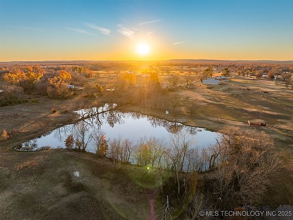 Nestled on a picturesque 10 +/- acres (CH) with multiple ponds, mature pine and apple trees, and flat, usable pasture, this beautifully updated home in Morris offers the perfect blend of comfort and country living. Inside, you’ll find four spacious bedrooms, 2.5 baths, new carpeting, solid wood cabinets and doors, and a well-appointed kitchen with granite countertops, and updated appliances including a convection oven with induction stovetop and air fry capability. The master suite is a private retreat with a Jacuzzi tub featuring dual heaters, a walk-in shower with dual shower heads, and a massive walk-in closet, while a large pantry and functional laundry room add convenience. Step out to the 13’x24’ covered back porch overlooking the above-ground saltwater pool and take in views of the 1-acre stocked pond—ideal for fishing bass and crappie—or wander over to the impressive 40’x72’ horse barn complete with eight stalls, a heated tack room, water, electricity, and overhead doors for easy access. A 30’x65’ spray-foam insulated shop with concrete floors, water, electric, and a 550-gallon propane tank provides ample workspace and storage. Located off a paved road just minutes from Morris, Okmulgee, I-40, Hwy 75, and Hwy 62, this versatile property is perfect for relaxing, entertaining, or pursuing your equestrian and agricultural passions. Additional Land Available.