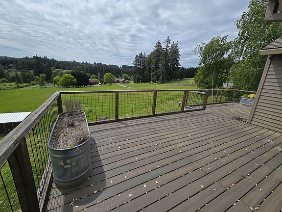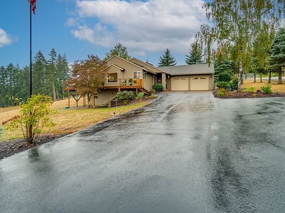 Available Now! 5 acres with RV parking, and territorial views. Main level has kitchen, living room with fireplace, dining room, primary suite with walk-in closet, huge windows looking out onto a wraparound deck and beautiful field. Lower level has living area with fireplace, 2 additional bedrooms + office, and bathroom. Pets and livestock welcome - chickens, cows, goats, etc. Fenced field, small chicken coop, metal outbuildings, garden. Must see! 3 minutes to Sherwood Highschool, 20 minutes to Nike World Headquarters, 27 minutes to Intel.