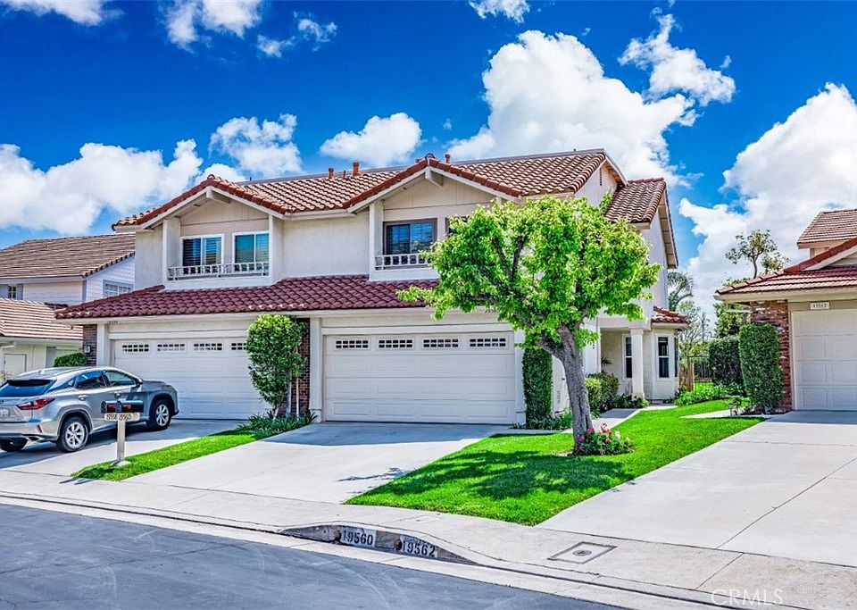 Nestled within the esteemed gated community of Porter Ranch Estates, 19560 Shadow Springs Way presents a refined retreat on a serene cul-de-sac. Boasting 3 bedrooms and 2.5 bathrooms spread across 1,929 square feet of living space. This immaculate residence exudes comfort and sophistication. From the central vacuum system to the allure of high ceilings and crown molding, every detail has been meticulously crafted. Dual pane windows bathe the interiors in natural light, complementing the recessed lighting that gracefully illuminates each room. The inviting living room centers around a cozy fireplace and seamlessly transitions to the outdoor oasis through French doors, leading to a tranquil patio. A chef's delight, the spacious kitchen features stainless steel appliances and ample cabinetry. Upstairs, the oversized primary suite offers an indulgent en-suite bathroom and a generously sized walk-in closet, while two secondary bedrooms share a full hall bathroom. Additional highlights include a convenient powder bath for guests on the main level and a 2-car attached garage for effortless parking. Beyond the confines of this remarkable abode, residents enjoy access to an array of amenities, including pools, a spa, tennis courts, and a sport court. Ideally situated near premier shopping, dining destinations, and outdoor recreational opportunities, this residence epitomizes the Southern California lifestyle.