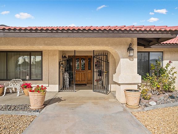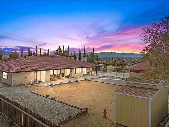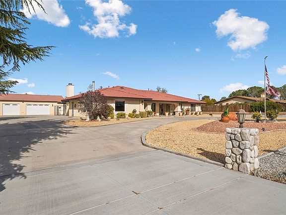 Back on the Market at No fault of home! Location! Location! Stunning Single Story with beautiful surrounding views and located in one of the most desirable areas of Desert Knolls in Apple Valley. This home is inviting and peaceful and features special touches throughout! Meticulously maintained offering an amazing floor plan perfect for entertaining your family and friends! Welcoming dramatic entrance with beautiful stained glass front door, neutral tile flooring, step down formal living room, separate formal dining room with coffered ceiling perfect for your largest dinner parties, pristine kitchen includes stainless steel 6-burner stove top and built in double ovens, trash compactor, ample cabinets, bright and sunny kitchen nook, this amazing kitchen opens to the spacious family room with a cozy fireplace, custom wet bar with sink and additional cabinets for storage and windows offering a peek a boo view! Amazing game room with lots of windows for natural light and views of the surrounding hills perfect for family and friends to gather. Large master suite with walk in closet, additional retreat with access to the backyard, luxurious master bath featuring double sink vanity, quartz countertops, deep soaking tub with jets and separate shower. Inside laundry room with utility sink and an abundance of storage. Secondary bedrooms have mirrored closet doors/ceiling fans and one offering a built in desk. Large private flat lot with 2 HUGE RV parking areas BOTH WITH FULL HOOKUPS as well as a 4 car garage plus additional separate 1 car garage/workshop. Additional storage shed that can be converted to an office space, craft room, man cave...endless possibilities! Your greeted with a welcoming circular driveway, front courtyard & low maintenance landscaping. Additional features: Central Vacuum System & Newer AC. LOW TAXES & NO HOA!! Located just minutes from restaurants and shopping. This home is truly a must see!