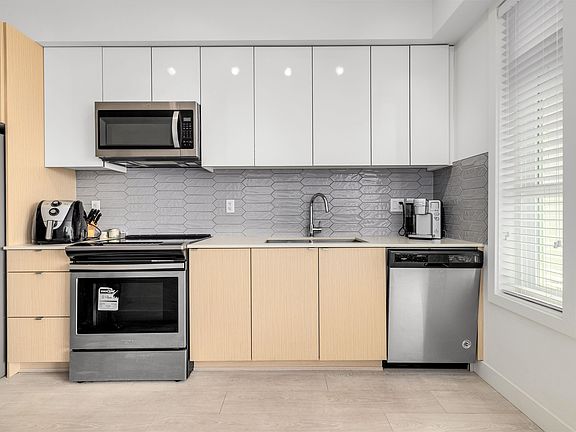 Unobstructed mountain viewsSleek kitchenCaesar stone quartz countersBold marble tile backsplashPlenty of natural lightIn-suite laundry