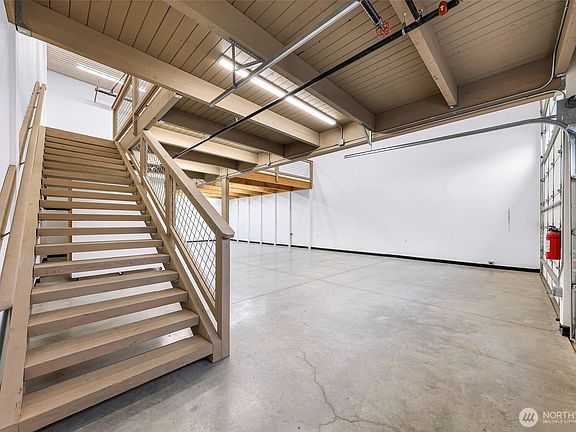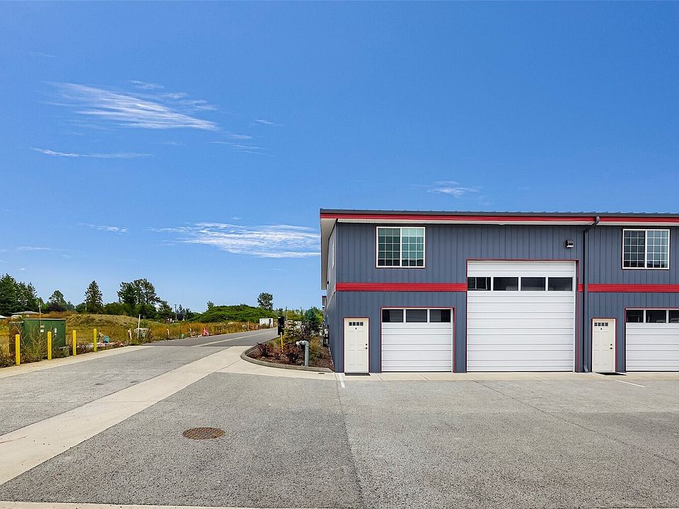 End unit w/ extra storage, second sink, portable walls & more windows to bring in more light. There is also an option for ventilation. Pioneer Flexspace Condos just off Portal Way in Ferndale off I-5, features approx. 2600 sqft of storage. The main floor is a concrete slab approximately 30’x 50’ (1516sqft). The timber framed mezzanine adds approx. 1100 sqft. Two overhead doors (14’x14’ & 9’x8’), a main entry door, vinyl windows, smooth concrete floors, 3/4 bathroom, utility sink, 75k BTU natural gas heat, small electric heater, upstairs sink, 50 gallon HW tank, 100 amp panel w/ a 50amp RV plug, wired for communications w/ Comcast & fully sprinkled. Individual address and mailbox with each unit. W&S included.