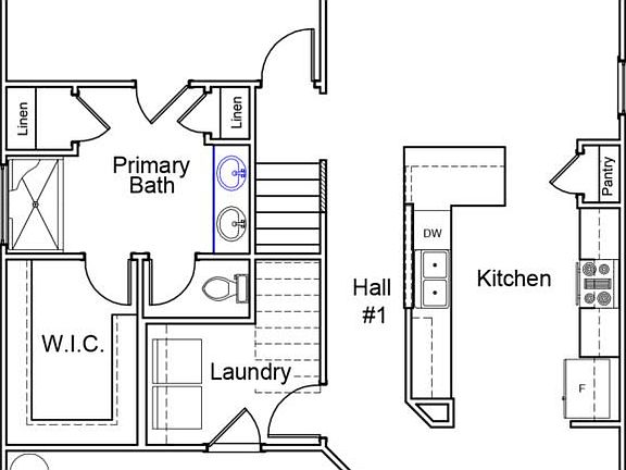 The Habersham is a three bedroom, two-and-one-half bathroom home featuring the primary suite on the main level. This open layout has the kitchen centered between the eat-in and great room. The kitchen includes granite countertops, stainless steel appliances, and lots of cabinetry. The primary suite is just off the great room and has a walk-in closet, dual sink vanity, and shower. Upstairs, two secondary bedrooms are spacious with walk-in closets and share a hall bathroom.