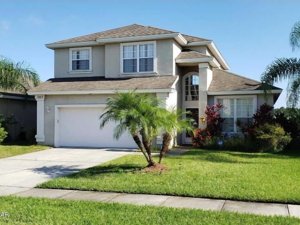 Beautiful pool home in sought after Port Orange neighborhood. Master bedroom and bathroom are downstairs looking out to the pool. 3 bedrooms upstairs with shared bathroom. Formal dining room and family room are open downstairs along with a half bath for guests. Great home for a family and has a wonderful view of the pond from the pool area! Lawn and pool service are included in monthly rent.