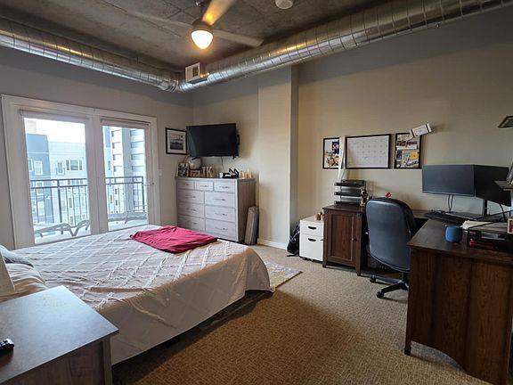 It will be hard to find a better 2 bed/2 bath (1530 sq ft) corner unit with this view for a better price. Large windows on every wall through the living areas, along with a big balcony overlooking Coors field and the mountains. Long entry hallway leads to front load washer and dryer. Giant master bedroom that easily fits a king bed, dresser, and L-shape desk. Second private balcony and walk in closet. Attached bath with double sinks. Second bedroom fits queen bed with another large desk. Full second bathroom with tub off the hallway. Stainless steel appliances, wood floors, and carpet in bedrooms. Amenities include rooftop patio with hot tub, grills, tv, fire pit, and dog run. Lobby consists of pool table, shuffleboard, kitchen area, and community conference space. Designated parking in heated garage.