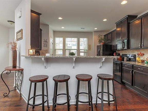 - Kitchen Features: Breakfast Bar, Cabinets Stain, Pantry, View to Family Room, Pantry Walk-In, Solid Surface Counters