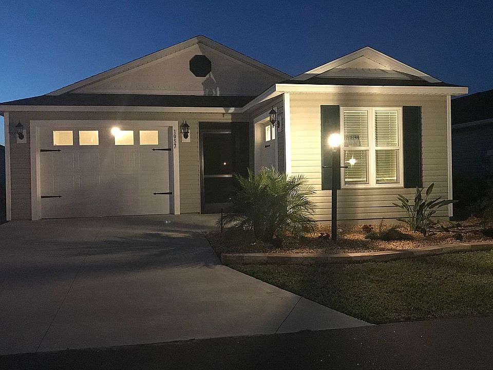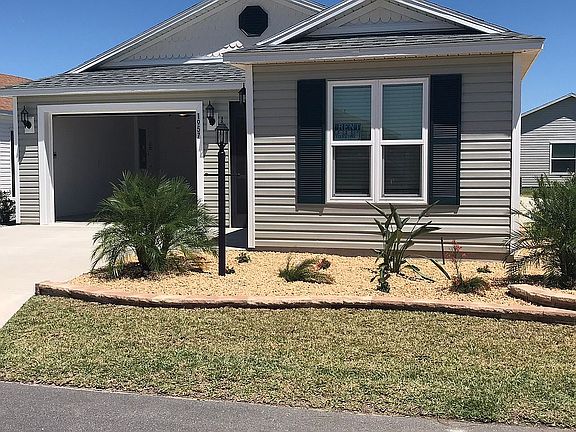 patio villa with cedar gabled medallions on exterior combined with engineered siding. Two separate garages with laundry tub. Separate indoor laundry area with bifold doors and shelves in a side hallway. Privacy lanai, with professional landscaping, sprinkler system, home smart, energy efficient, stainless steel appliances, gourmet kitchen with Island. Gorgeous professionally designed landscaping project, front, sides, and backyard. Windows in the back are private, and back to evergreen bottlebrush trees. All tropical landscaping throughout. Two garages, one big enough for an SUV, the other a golf cart garage. Close to two brand new swimming pools and recreation centers, a brand new shopping center, and numerous golf courses, all free with your monthly homeowners dues.