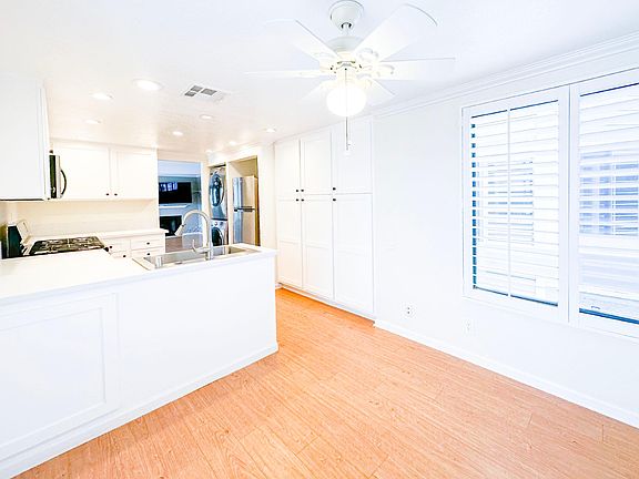 Views Views all around! This top floor, naturally light and bright corner unit has a lot to offer in the highly coveted city of Signal Hill. There''s a washer and dryer in the remodeled kitchen, along with stainless steel appliances, plenty of cabinet and pantry space, and a breakfast nook. The unit has central AC, controlled with a smart thermostat. The open floor concept makes for an inviting space, with a step down family room that offers a gas fireplace. There are many windows throughout the entire unit that come equipped with plantain shutters. The primary bedroom is spacious. It even has a separate space/nook that would be perfect for a little office or lounging area with awesome views. It also has two large closets, and an en-suite, private bathroom with dual sinks, a private toilet room, and a shower. The second bedroom is separated and on another end of the unit, next to the guest bathroom that has a tub and shower. One of the absolute BEST parts about this unit is the spacious balcony. No matter where you stand, you will have amazing views from hillsides, to the city, and even the ocean on a clear day.The condo is located within a small, secured, peaceful, and nicely landscaped building with outdoor hallways. This unit has two assigned parking spots in a gated garage, and guest parking as well. The complex is small with only 16 total units. Walking trails, several parks, and outdoor exercise equipment all within blocks of your front door! Water is included in rent. Gas and Electric will be paid by tenant. The unit comes with two TVs, all stainless steel appliances provided by landlord, washer and dryer, and central AC with a smart thermostat. Proof of Tenant Insurance is required.