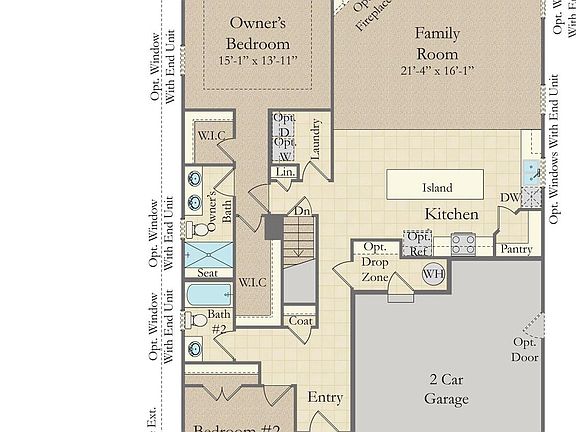 - Pantry, Walk-In Closet(s), Combination Kitchen/Living, Family Room Off Kitchen, Entry Level Bedroom, Kitchen Island, Breakfast Area, 9'+ Ceilings, Dry Wall