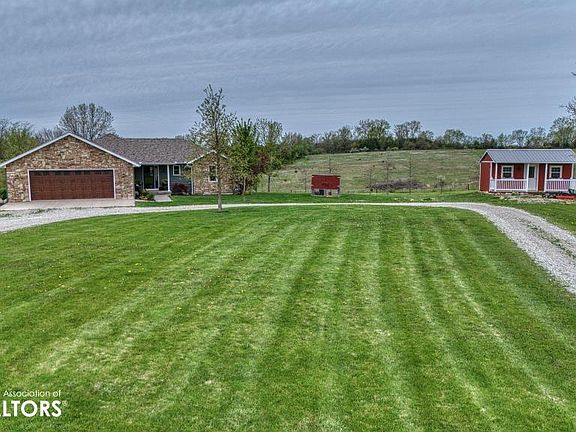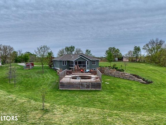 Country Living with Modern Comforts – Just Outside City Limits! This beautifully maintained raised ranch sits on 10 acres of agriculturally zoned land—perfect for a hobby farm, livestock, or just wide-open space for kids to roam. Featuring 3 bedrooms and 2¾ baths, this open-concept home is handicap accessible and designed for comfort and functionality. The spacious primary en-suite includes a large walk-in closet, soaking tub, and double vanity. The finished basement offers walk-out access, a tornado shelter for peace of mind, and an incredible 4K home theater with 5.1 surround sound, a 150" projector screen, and soundproofing—all included! Step outside to your private lower patio or head up to the upper-level deck—ideal for entertaining or simply enjoying the views. There's even a screened-in porch and a large deck ready for your future pool. A 2-car attached garage, 14x20 shed, and generous pasture space provide plenty of room for horses, cows, chickens, or other animals. Conveniently located on a paved road just outside city limits, this property combines privacy, practicality, and modern amenities in one perfect package.