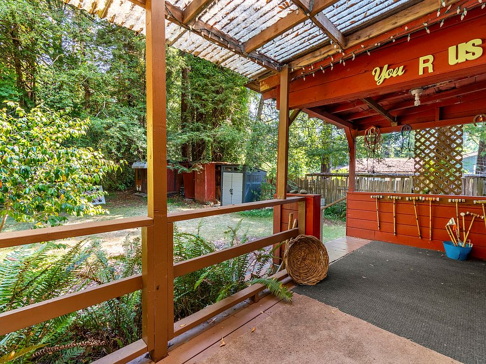 Meet ''THE DOOZY'' Whether this little gem of a cottage is your primary dwelling, your year-round weekend getaway, or a rental, you will find it has all you need. Though its square footage is small, the bedroom, kitchen, dining and living areas are spacious. There are 5 outbuildings: two storage, a woodshed, a pump house, and a mini-house with a bunkbed and electricity. In sunny weather you will enjoy playing horseshoes, croquet, hanging around the fire pit, and of course there is always the short walk to the beautiful Van Duzen river with its many swimming holes. When it's chilly outside, cozy up to the wood stove and settle in with a good book. This home was solidly built with old growth redwood and comes fully furnished.