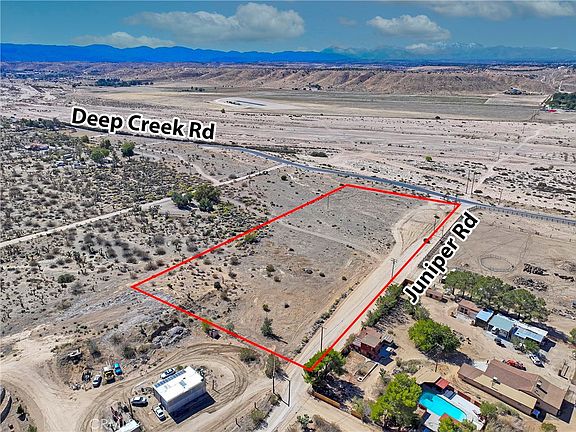 This exceptional 4.8 acre parcel of land offers a rare blend of privacy, panoramic views, and peaceful rural charm. Surrounded by established ranches and custom built homes, this property sits in a quiet, low-density area that feels worlds away from the bustle-yet remains conveniently accessible. Whether you are envisioning a custom estate, a private retreat, or a working ranch with horses and farm animals, this land is your perfect canvas. Utilities in street (buyer to verify) and a water well on property along with paved streets leading to the corner of Juniper. This parcel is ready for your future estate and several ADU units per County of San Bernardino