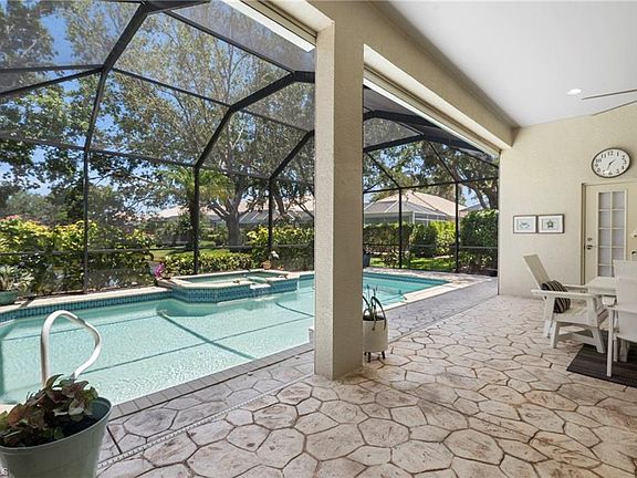 Welcome to your dream home in Pelican Marsh's Timarron neighborhood, one of North Naples' most highly sought after communities. This beautifully designed SINGLE-STORY, 3-BEDROOM, 2-BATH RESIDENCE blends COASTAL-INSPIRED ELEGANCE with modern comfort and an OPEN-CONCEPT layout perfect for relaxed Florida living. From the moment you enter, you'll notice the home's bright, spacious feel, highlighted by 10-foot ceilings, crown molding, custom lighting, and an abundance of natural light that flows throughout. The kitchen features white cabinetry, granite countertops, newer appliances, a pantry, breakfast dining area, and recessed lighting - making it as functional as it is stylish. The PRIMARY SUITE offers a serene retreat with a spa-like bath featuring a dual-sink vanity, soaking tub, and separate shower. Additional rooms include a welcoming guest bedroom and bath, plus a versatile third bedroom that can also serve as a comfortable home office. The private OUTDOOR OASIS is complete with a SPARKLING OVERSIZED POOL, relaxing SPA, and tranquil LAKE VIEW BACKDROP - the perfect setting to enjoy morning coffee, nightly sunsets, or an evening under the stars. Situated on a QUIET CUL-DE-SAC, this home offers privacy and serenity while still being just minutes from Naples' vibrant shopping, dining, and NUMEROUS BEACHES. Residents of Pelican Marsh enjoy an AMENITY-RICH LIFESTYLE with access to a Community Center featuring a clubhouse, spa, social events, FITNESS CENTER, PICKLEBALL, TENNIS, bocce, and the popular "COURTSIDE" RESTAURANT. Check in with the Pelican Marsh Golf Club for optional golf memberships. Conveniently located near Mercato, Waterside Shops, 5th Ave South, and the Gulf's white sandy beaches, this home captures the essence of the Naples, Florida lifestyle - Don't miss the opportunity to experience it today!! Buyer to verify all information.