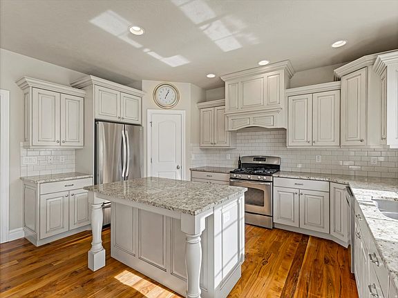 Sleek tile backsplashGrand entrywayElegant front entryWhite hand-crafted cabinetrySoaking tubCharming stone accentsOpen-concept gourmet kitchen
