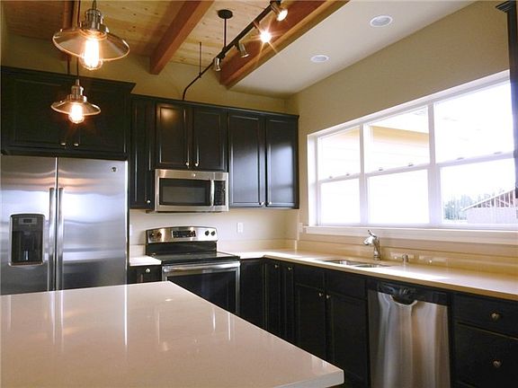 1693 sqft 3 bedroom 2.5 bath three year old home in Lynden. Like new living with this craftsman style gem in a cozy neighborhood. Open concept living area and kitchen featuring granite counter tops, stainless steel appliances, and a spacious island. Main floor master suite with two closets and attached private bathroom. Additional features include vaulted ceilings, partially fenced yard, vinyl plank flooring and a two car garage.