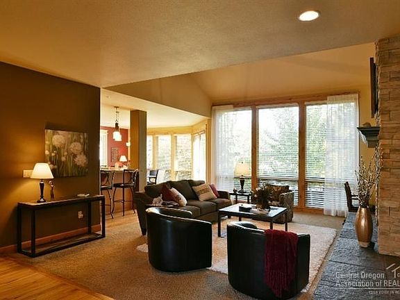 Enjoy fishing, hiking.biking right outside your door. Close to First St. rapids bridge & new park. Bakery, breweries, markets. End unit town home just steps away from the Deschutes, w/ great room floor plan, stone fireplace & high end finishes throughout. Chefs kitchen. Wood wrapped windows, stone, tile roof. Generous 2 car garage. Front porch. New exterior paint. Perfect move in condition. Walk to fishing, river trails,down town Bend. Purchase includes stainless fridge plus washer/dryer.