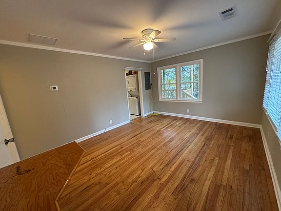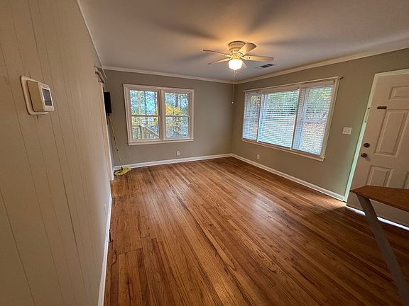 This house sits 1/2 mile from 285/S Cobb exit, at the top of the hill on a dead end street. It has been freshly painted throughout. New bath, Brand new HVAC, new double hung windows with shades, plenty of insulation in the attic. New, Private side deck. Stack washer/dryer included. New extremely quiet dishwasher. Available now. Bring your paycheck stubs and bank statements. One year lease. Security deposit may get you a lease, first month rent gets you a key. I pay water. You pay electric, gas and trash removal