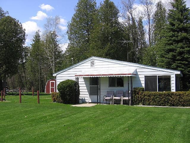 Peaceful, private setting on Metzelaar Bay on the south end of Grand Lake. Excellent area for all of your recreational activities on 75 feet of wonderful SANDY BOTTOM WATERFRONT. Good water depth for a boat and hoist but shallow enough so it's great for kids. Deep, flat lot with plenty of space in the yard, & wooded lot on one side for privacy. Two-bedrooms, 1 bathroom, extra large sunroom for spectacular views or can be used to accommodate guests for extra sleeping space. Bathroom was completely remodeled in 2012. Newer water heater, new water softener, new submersible pump and tank. Washer and dryer hook-up. 3 sheds for storage. Dock is in good condition and is included in sale.