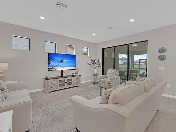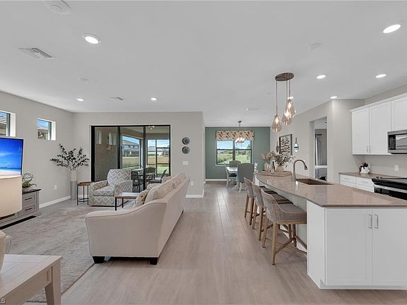 TURNKEY FURNISHED and ready for you to move right in—this beautifully upgraded SUMMERWOOD MODEL by PULTE HOMES is your chance to start living the Southwest Florida dream! Located in the resort-style community of The Place at Corkscrew, this home offers 2,043 SQ FT with 3 BEDROOMS, 2 BATHROOMS, and a 2.5-CAR TANDEM GARAGE—perfect for two cars plus your golf cart! The OPEN-CONCEPT design features WHITE SHAKER CABINETS, QUARTZ COUNTERTOPS, an EXTENDED ISLAND, and a newer WHIRLPOOL REFRIGERATOR. All furniture and essentials are INCLUDED—just pack your bags! Enjoy sunsets on the EXTENDED SCREENED LANAI, plumbed for an OUTDOOR KITCHEN with space to add a pool. The PRIMARY SUITE includes a WALK-IN SHOWER with FLOOR-TO-CEILING TILE, GRAB BARS, UPGRADED MIRRORS, and WALK-IN CLOSET. SMART-HOME UPGRADES include RING DOORBELL, KEYLESS ENTRY, WI-FI THERMOSTAT, and SMART GARAGE OPENER. Resort amenities include a Lagoon Style POOL with WATERSLIDE, spa, 2-Story FITNESS CENTER, CAFÉ, RESTAURANT, Bourbon Bar, Tennis, Pickleball, Bocce Ball, Basketball, Sand Volleyball, dog park, playground, and more! Pack your suitcase and start enjoying paradise today!