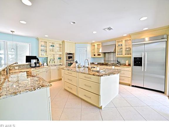 Fantastic bayfront home located in Aqualane Shores! Walk short distance to the beach. Nice open floorplan with stunning bay views, gourmet kitchen and swimming pool. Boat dock features 40 foot dock with double jet ski lifts and offers deep water with direct Gulf access. Separate guest area with bedroom, bath and full kitchen. Walk to 3rd Street and some of Naples finest restaurants and shopping! Property is being sold as-is with the right to inspect.