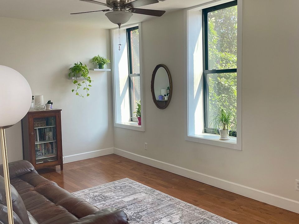 This south facing 2nd story townhome has 2 bedrooms and 1 bathroom. This sunshiny unit is perfect for a plant lover. The bright rooms and open spaces look stunningly chic even though it was constructed during the Gilded Age era.