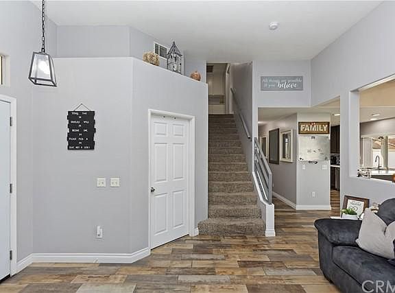 This gorgeous 2-story home is located in the highly sought after community of Orangecrest in Riverside. Tucked behind the private, gated community of Stonegate, this 4 bedroom/3 bath house is in a quiet cul-de-sac where the kids or grandkids could play until the lights go on. Walk into this beauty and land in the formal living room. The formal living room features high ceilings, a fireplace with custom tile and a mantel. The whole downstairs is decorated with fresh paint, recessed LED lighting and wood tiled flooring throughout. Make your way into the dining room and get views of the private, large backyard through the brand new sliding doors. The galley kitchen has all stainless steel appliances including a standing range. The countertops and cabinetry have all been upgraded. The kitchen runs right into the open family room to relax with a movie after dinner. Wrap around the kitchen and find the laundry area behind accordion doors. Completing the downstairs you'll find a large guest bedroom and the guest bathroom. The bathroom has been recently remodeled. Make your way upstairs and you won't help but notice the custom stainless steel, custom railing going upstairs. Make it to the top of the landing where you'll find plenty of cabinetry, a second guest bathroom and 2 more guest rooms. Last, you find the master bedroom and en-suite with dual vanity sinks. The upstairs has new, plush carpeting throughout along with fresh paint. Make your way to the huge backyard only to find a large Alumiwood patio cover with ceiling fans, a custom dog run, vinyl fencing surrounding the property and plenty of grass for the children to play or large enough to design your future pool and spa. This home is truly ready for move-in and well-maintained. The Stonegate community offers a tennis court, a basketball court, a sand volleyball court, a park and a BBQ area for all the neighbors to enjoy. This home is located a short walk from some of Riverside's best restaurants, LA Fitness, shopping, a movie theater and some of the best rated schools in Riverside. Close to churches and all major freeways 215/91/60. Don't miss your chance to own this Orangecrest beauty!
