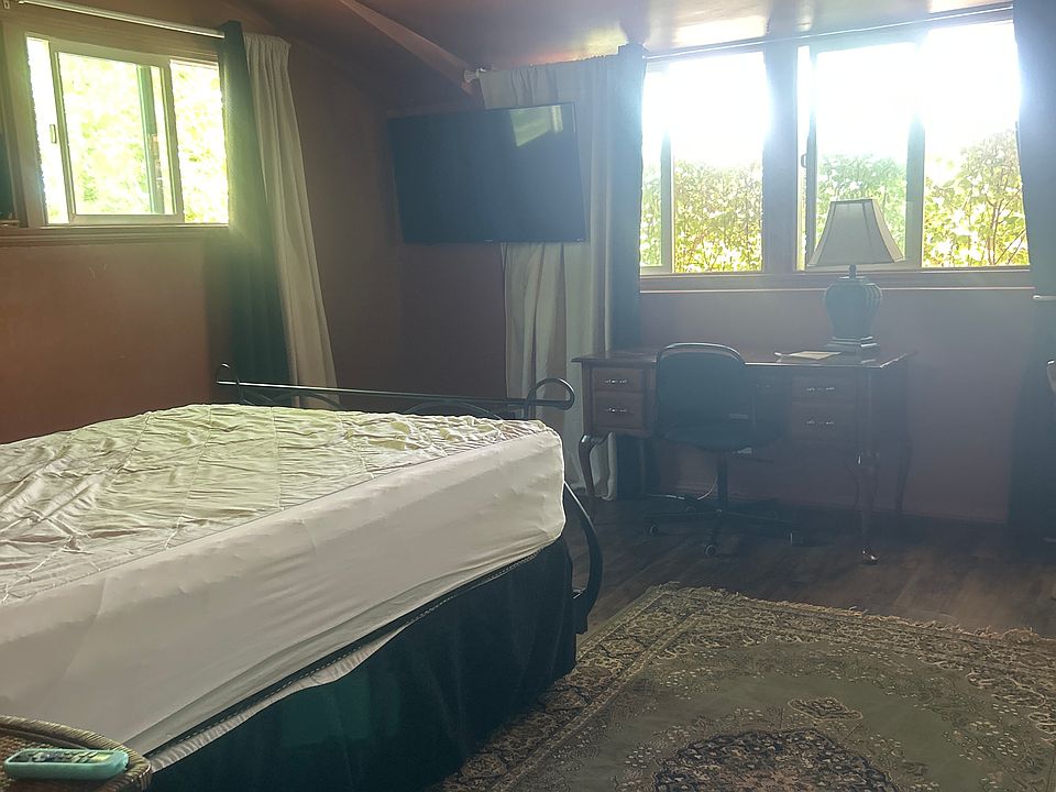 Large furnished bedroom, shared bathrooms, one shower doesn't get used, so you have your own shower. Currently room rents on air bnb and I have 9.97 rating. I offer privacy and comfort and peace. Peaceful household. There are 4 bedrooms in the house, I'm in one room, my daughter in room, and aunt Patty in a room.