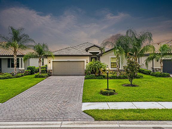 Looking for a short term rental? This incredible home is available from September - December 2025. Don't wait on this tastefully furnished home with a coastal theme in one of the best locations in the community - awesome view of the amenity center from your lanai - with a west facing exposure across the large lake - the sunsets are to die for!! Beautiful and well cared for unfurnished 3br + den/3ba (den can be used as a 4th bedroom) Trevi model with granite countertops, beautiful backsplash, Culligan water softener system, upgraded connections for portable generator.