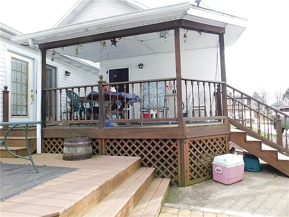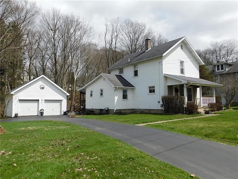 Enjoy your summer relaxing on your rear porch overlooking the creek. Brick patio, fire pit. 2 car det. garage. Front porch. Beautiful oak kitchen w/appliance package & breakfast nook, new floor. Large LR, DR. Master en suite 1st floor that has french doors to covered porch, hair salon. full bath w/standing shower/ 4 skylites. (This room currently used as a Fam. Rm.) 2 lots. Nice driveway enters from street Plus alley--easy access. The yard feels country and private even tho it is on a city lot close to town. DOUBLE LOT.