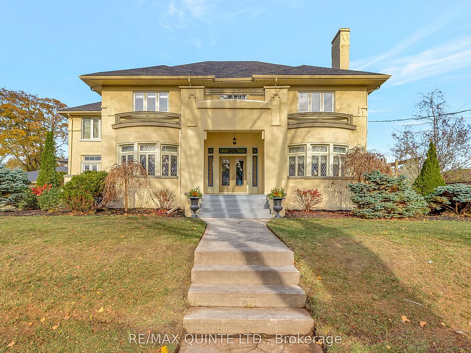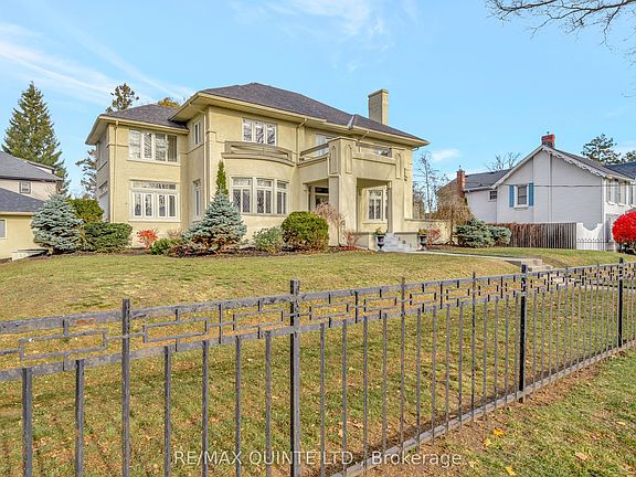 Welcome to one of Belleville's most stately, architecturally significant century homes. Over 4,600 sqft of finished above-grade living space. Set proudly on an elevated, manicured corner lot, this exceptional property combines timeless craftsmanship with expansive, elegant spaces rarely found today. Step through the grand central foyer you are immediately greeted with soaring ceilings, intricate millwork, oversized mouldings, and beautifully preserved solid wood trim and door frames. The sweeping staircase anchors the main level and sets the tone for the impressive scale of the home. The formal living room is warm and refined, with access to a sun-filled attached sunroom overlooking the grounds. A separate formal dining room, dedicated main-floor den, and spacious eat-in kitchen provide exceptional flow for both everyday living and entertaining. Upstairs, you'll find four generously sized bedrooms, including a remarkable primary suite featuring its own private sunroom with hot tub, and abundant natural light. The finished third floor offers an additional bedroom, full bath, and flexible space ideal for guests, teens, and office, or studio. The exterior of the home is equally impressive. A 32'x22' detached 3-car garage provides ample parking and storage. The private backyard is complete with a pool with a brand-new liner and huge newly built deck designed for gatherings, relaxation, summer enjoyment. From its commanding presence and meticulous craftsmanship to its extensive living space and modern amenities, this home is a rare opportunity to own a true piece of Belleville's history-beautifully maintained and ready for its next chapter.