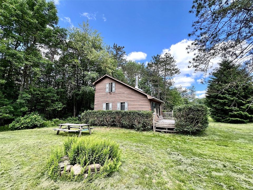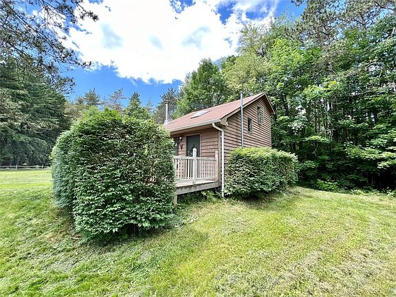 NEW PRICE! Looking to open an Airbnb or create your own peaceful retreat? This charming property in Upstate NY offers a serene escape. Comparable nearby Airbnb rentals command $125 per night, highlighting its potential income. Ideal for expansion, the 24-acre salt box-style setting is both spacious and quaint, easy upkeep, room for additional cabins. Just under 6 miles from town, it boasts a tranquil country ambiance. Inside, unwind by the Timberline wood stove or enjoy forest views from the front porch. Groomed trails wind around the property, perfect for morning walks. A large 2nd floor bedroom can comfortably sleep four. Completely secluded from the road and neighbors, the land features a mix of pines, hardwoods, and wildflowers, ensuring privacy and natural beauty year-round. Heating primarily by wood with minimal electric baseboard use keeps maintenance costs low, making this an inviting investment opportunity or personal sanctuary. Home comes fully furnished and ready to go.