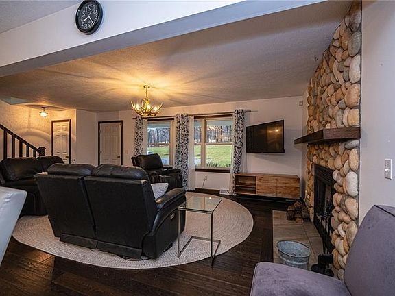 Welcome to 196 Carlton Rd, Sandy Lake! The tree-lined driveway welcomes you to this 4 bedrooms and 3 full & one half bath home. The main level offers an open and airy floor plan that lets the light shine in. A first floor master bedroom has a full bath and oversized closet. Hardwood floors adorn the main level with a kitchen that boasts character grade hickory cabinetry, stainless steel appliances and granite counter tops. A covered deck off the dining room makes this home a great place for entertaining. The living room offers a fireplace and is adjacent to the dining room and kitchen. The upper level has 3 oversized bedrooms and a full bath. The lower level is finished with a walk out to the beautiful panoramic views that total close to 20 acres. There is a stream on the property making this the perfect place for hunting and recreational vehicles. The 2 car attached garage offers plenty of space for parking with additional storage. In mint condition this home is a must see.