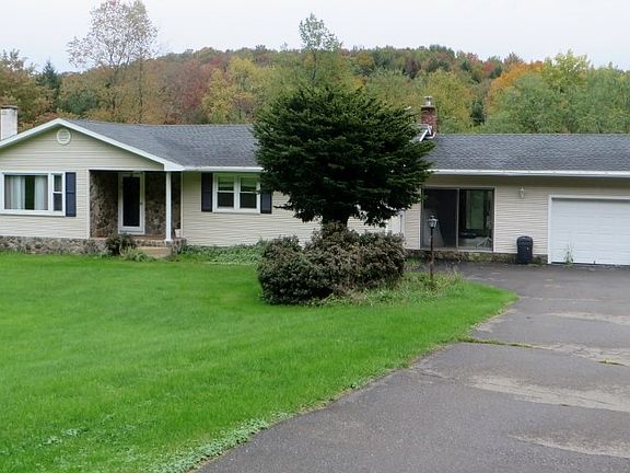 COUNTRY FEELING!!! but still in town, sits this Ranch home situated on 3.93 acres. Located in Sullivan County Dushore Boro, this Ranch home has a completely remolded custom-made Cherry kitchen with stainless steel appliances and granite counter tops. The home also offers a large living room with propane gas log fireplace, walk in shower in the remolded bathroom, a breezeway that has been turned into a great in-home office and a 1 car attached garage. Go outside and enjoy the brick patio, private back yard with a spring fed concrete constructed pond and some woods that goes down to the creek on the back of the property. Made a point to check this property out.