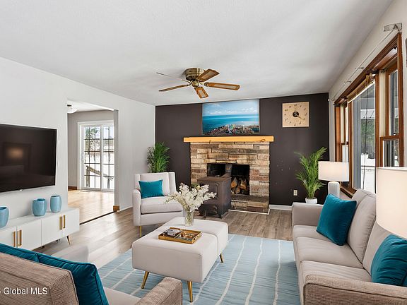 Charming 3-Bedroom, 2- Full bathroom Custom home in Schalmont School District. Nestled on a .52-acre corner lot, this 1,760 sq. ft. home blends comfort and style. Enjoy a cozy living room with a wood stove and new LifeProof flooring, an elegant dining room with classic wood floors, and a spacious eat-in kitchen with tiled countertops, a butcher block, and breakfast bar. The bright family room features a wet bar, pellet stove, and backyard views. The large master suite offers a walk-in closet and deck access. Central air ensures year-round comfort. Conveniently located for an easy commute to the Capital Region. Make this home yours today!