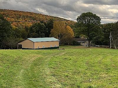 COUNTRY PARADISE close to amenities and convenient to State Highway 8, State Highway 7 and I-88. 3 Bedroom, 1 1/2 Bath Ranch style home on 13+ country acres. 2 Porches, large lawn and two streams, complete with babbling waterfalls running through-out the parklike setting. Oversized 30'x64' Pole barn with 12'overhang and 16' door and electric.