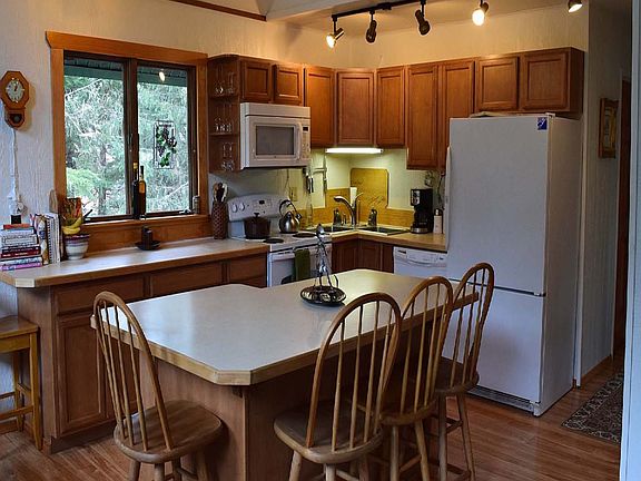 Unique ski home with room for you & all your friends! Ground floor includes large tandem pull thru carport & one car garage w/office and bunkroom. Two separate living spaces upstairs with two bedrooms on each level and a full kitchen and bath. Top floor has vaulted ceilings and an amazing view of the mountain! Two covered decks, tons of parking, suitable for two families to share, as a single family residence, or nightly rental. Carport has gravel floor with pull thru doors on each end. Lots of extra storage for kayaks, bikes, etc. Ideally located near Alyeska Ski Lifts as well as Moose Meadow for cross country skiing. Finishes are simple and rustic with smaller bedrooms. Improvements include new kitchen on third floor with new cabinetry, island, reconfigured master bedroom, and installation of laminate floors on 2nd, 3rd floors and loft area. Full list of improvements included as addendum to disclosure statement.