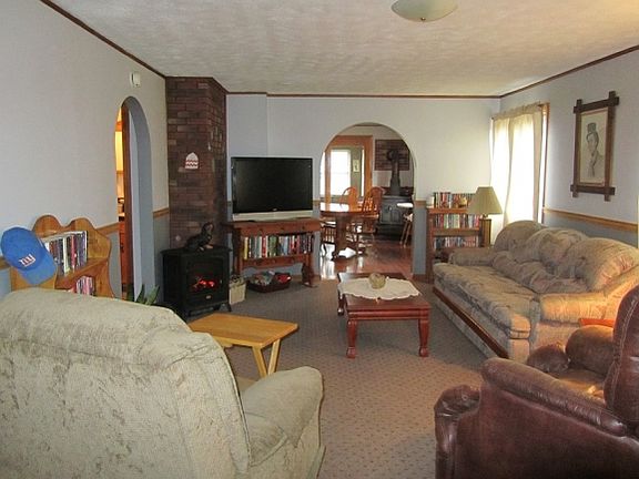 Everything a family needs is right here on 3+acres.. The main house has four bedrooms, a sun room and long screen porch, with a private in-law apartment underneath and a detached guest cottage. Also a humungous detached barn/workshop and wood shed. A sawmill on site is negotiable. The area offers recreation from the back yard with snow machine trails also nearby golfing, boating, skiing close to all amenities. The property is perfect for a large extended family or use the other units to pay the mortgage. Approximately $1,000 per month potential rental income.