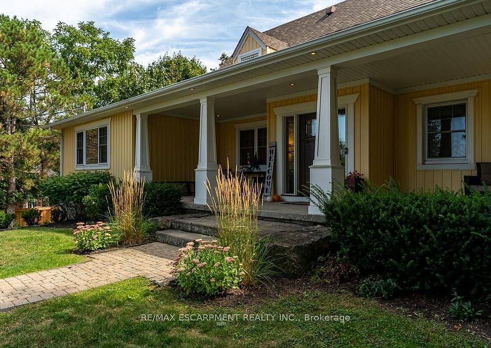 Sigh in relief when you discover this handsome and extensively renovated 3-family home in the heart of Waterdown. Boasting over 5000sq ft of thoughtfully designed living space on a mature .61acre lot, this rare gem features three bright, spacious, and fully self-contained suites each with a private entrance, full kitchen, laundry, parking, and outdoor living space. The expansive main floor suite offers 2 bedrooms plus a den, formal living and family rooms with gas fireplaces, engineered floors, upgraded lighting, and a stunning entertainers kitchen with high-end finishes. The charming upper-level suite has 2 bedrms, newly renovated bathroom includes a sun-filled living room, a full kitchen with dining, a 4-season sunroom with heated floors, and its own private fenced yard. The walk-out lower-level suite features 2 beds, 1 bath, a huge eat-in kitchen, a rec room with gas fireplace, large windows, and a covered patio. The tree-lined driveway leads to a heated 3-car garage with hydro and offers parking for up to 11 vehicles, including space for RVs, boats, or trailers. Professionally landscaped with extensive armour stone and upgraded exterior lighting, this unique property is located just steps from downtown shops and eateries, and minutes to highways and GO Transit. Ideal for multigenerational living, income potential, or future redevelopment (buyer to verify), this well-done home offers privacy, flexibility, income and unmatched curb appeal in a highly desirable location.