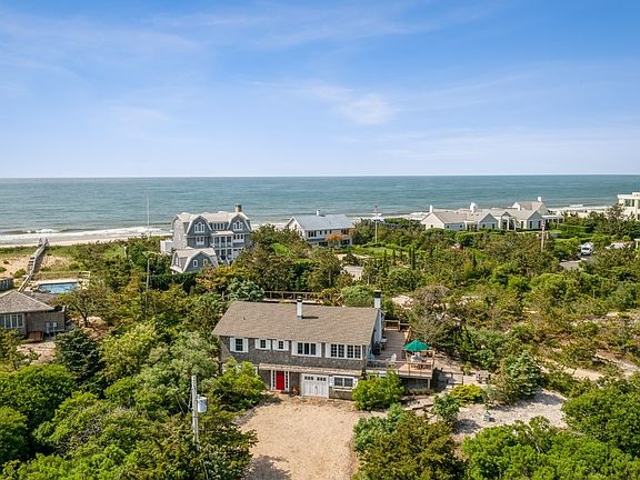 Welcome to 196 Dune Rd., a designer renovated, immaculate beach house with a private path to the ocean and magnificent bay views. Lush landscaping surrounds the heated pool and spa providing a private oasis for swimming and relaxing. Expansive decks offer the perfect setting for al fresco dining with magnificent sunset views. The house includes five bedrooms (two en-suite), four and one-half baths, living room with fireplace, dining area, and kitchen. Also a spacious light-filled enclosed porch for your morning coffee or evening read, and a den/office for those work-from-home days. This coveted beachfront location is less than two hours from NYC, and minutes to Gabreski Airport, the Jitney, train, and the great restaurants and shops in the Villages of Quogue and Westhampton Beach.