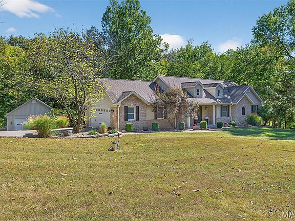 Welcome to 196 Dunn Road where peaceful country living meets modern luxury. Nestled on 8 private acres, this 3-bed, 5-bath retreat is the perfect blend of rustic charm and refined style. Step inside to discover a stunning interior with soaring ceilings, rich finishes, and an inviting wood-burning fireplace that anchors the living space with warmth and character. The open-concept design flows effortlessly into a chef-inspired kitchen and spacious dining area, perfect for entertaining family and friends. The primary suite offers serene views and a spa-like feel, while each additional bedroom features its own private walk-in closet, for ultimate luxury and convenience. Downstairs, you’ll find even more flexible living space ideal for gatherings, a home gym, or media room and a sleeping area that could act as a 4th bedroom. Outside, the property truly shines, with 8 sprawling acres of privacy, mature trees, and endless possibilities for recreation or relaxation. The massive detached shop is a dream come true for hobbyists, car enthusiasts, or anyone in need of extra storage or workspace. Whether you’re sipping coffee on the porch or watching wildlife at sunset, this property offers the peace and beauty only country life can provide-all just a short drive from everything St. Louis has to offer.