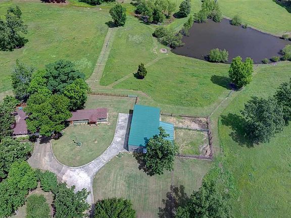 One level 3/2 brick ranch tastefully updated on 15.77 acres fenced and cross fenced with the most beautiful serene surroundings of the countryside, only 10 minutes from town, in LHSD. Property includes a small unfinished guest house or office with water and electricity, a 60x32 barn/shop, with a concrete floor, that's plumbed and wired w/100 amp service and a 16x40 lean to for horses or livestock, a stocked pond, flowering trees and bushes, and flowers galore. Come see everything this property has to offer.